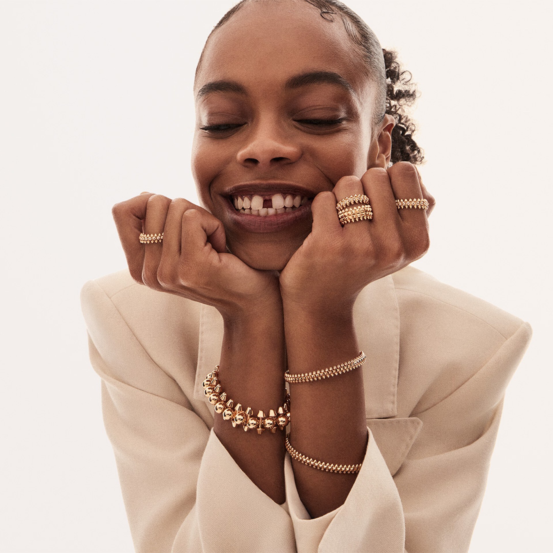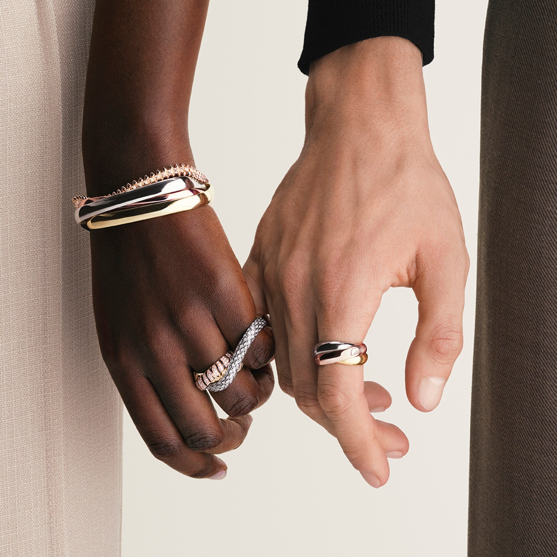 Its pure, unisex, instantly recognisable design allows infinite styling possibilities: set with diamonds, as a ring, small or medium size, as a pendant, in white gold, doubled or multiplied even further, and as a flexible version.